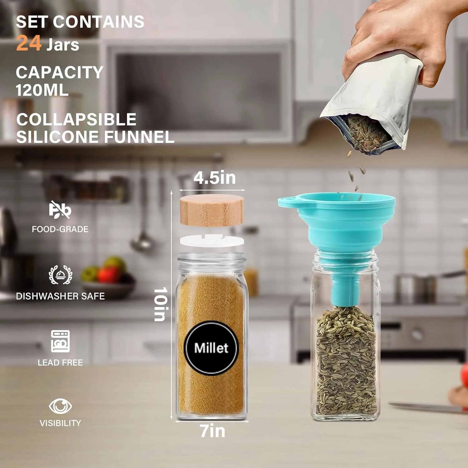 بسعة 120 مل لكل برطمان، يوفر هذا طقم برطمانات توابل مساحة مثالية لتخزين مختلف أنواع التوابل، الأعشاب المجففة، أو خلطات التوابل. يتيح التصميم الشفاف التعرف على المحتويات بسهولة، بينما يسهل الشكل البسيط ترتيب البرطمانات داخل الأدراج أو على الأرفف أو في رفوف التوابل.