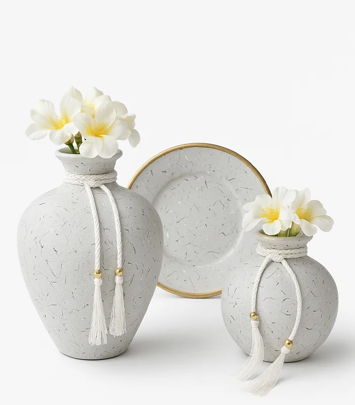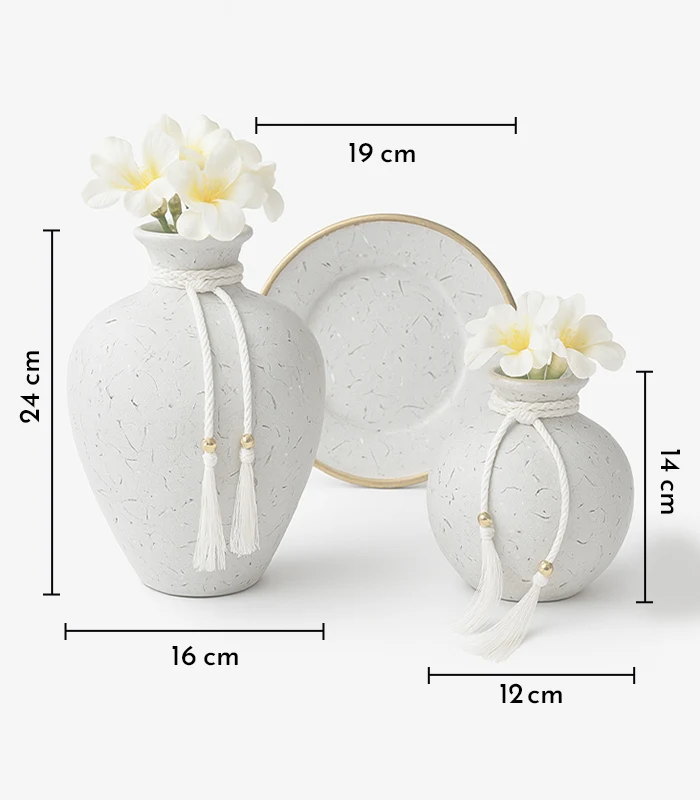 مجموعة فازات سيراميك من 3 قطع: فازة كبيرة, فازة صغيرة, وطبق للتزيين
