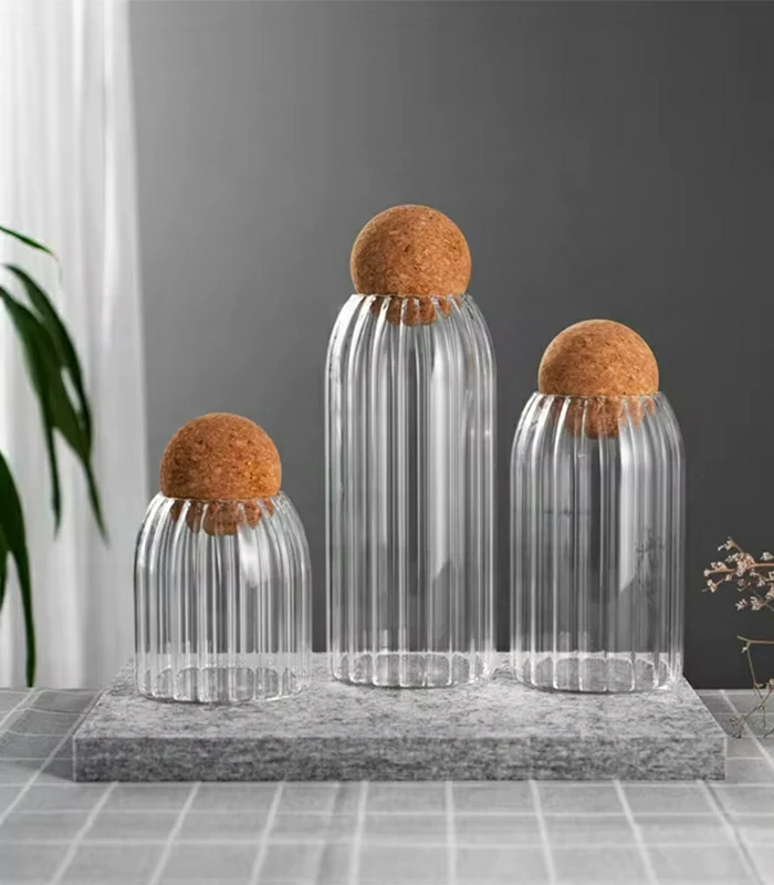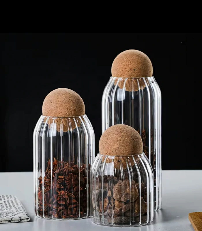 Crystal Lid Spice Glass Jar, 3 Pieces Glass Jar Set, 1270ml, 950ml, 635ml