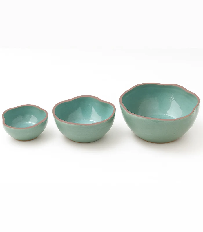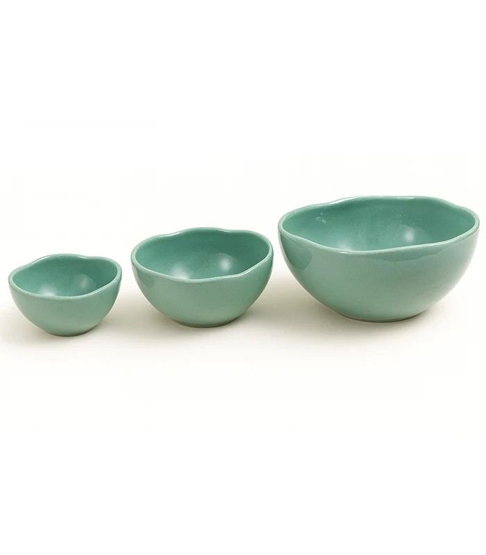 طقم بولات انيق مصنوع يدويًا، 3 قطع بولات خزف مصنوع يدويًا