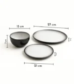 - الاستخدام: مناسب لتقديم الأطباق الرئيسية، السلطات، المزّات، والحلويات؛ ويمكن استخدام القطعتين الأصغر كأوعية أيضًا.