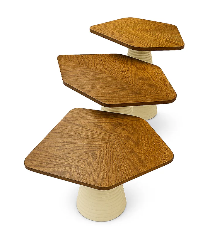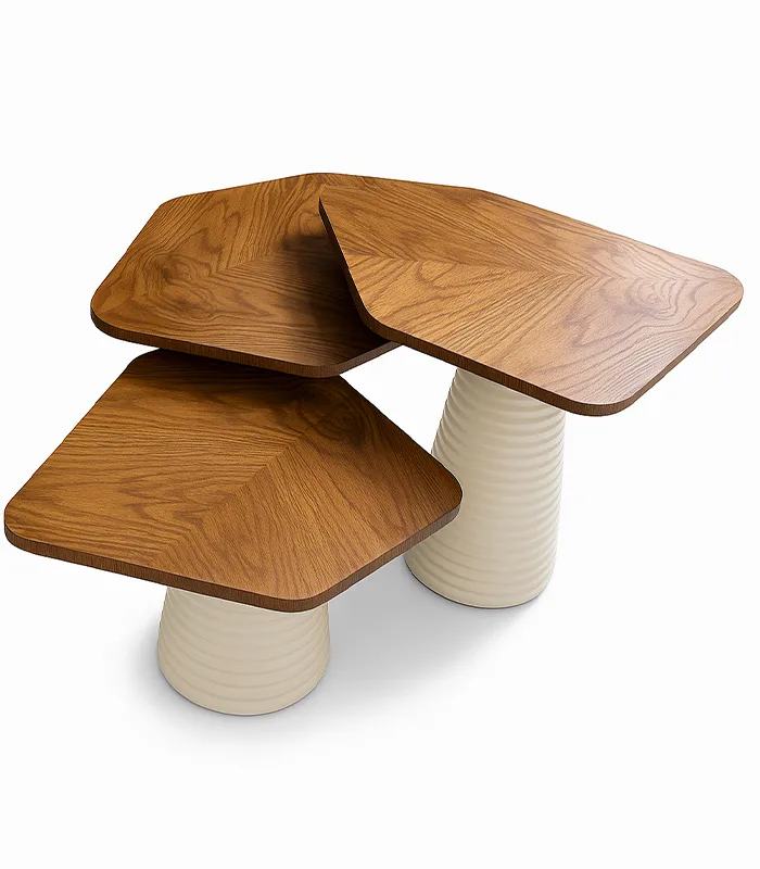 مجموعة من 3 ترابيزة مودرن بتصميم فريد مستوحى من شكل الورقة