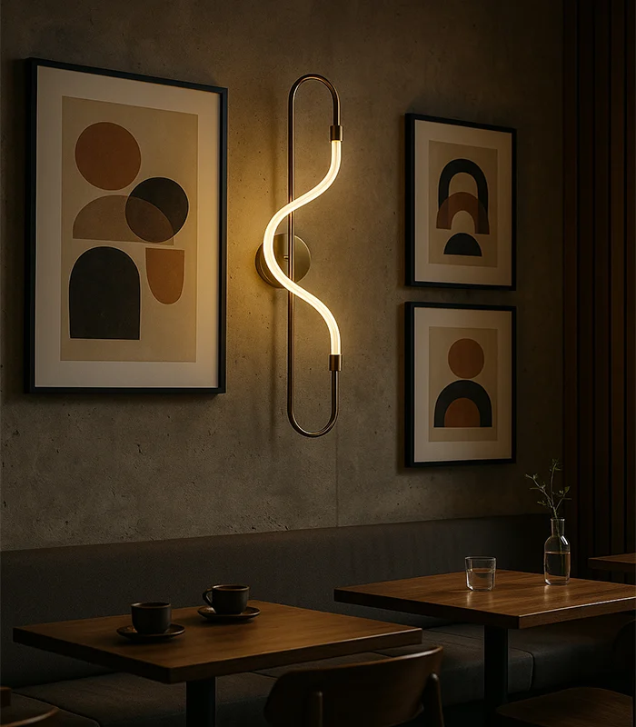 يمنح التصميم الانسيابي على شكل S مظهرًا متصلًا وسلسًا يجذب الانتباه وينسجم بشكل مثالي مع الخطوط المعمارية النظيفة. وتُعد هذه الإضاءة الحائطية المودرن خيارًا مثاليًا للمنازل ذات الطابع العصري أو المينيمال، حيث توفر إضاءة غير مباشرة وهادئة تضفي أجواءً مريحة دون وهج مزعج.