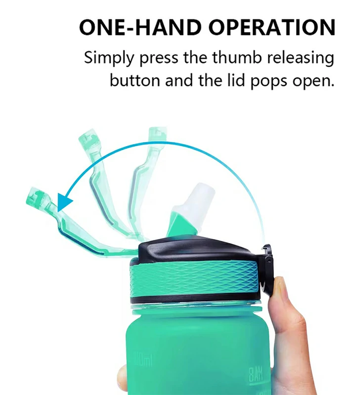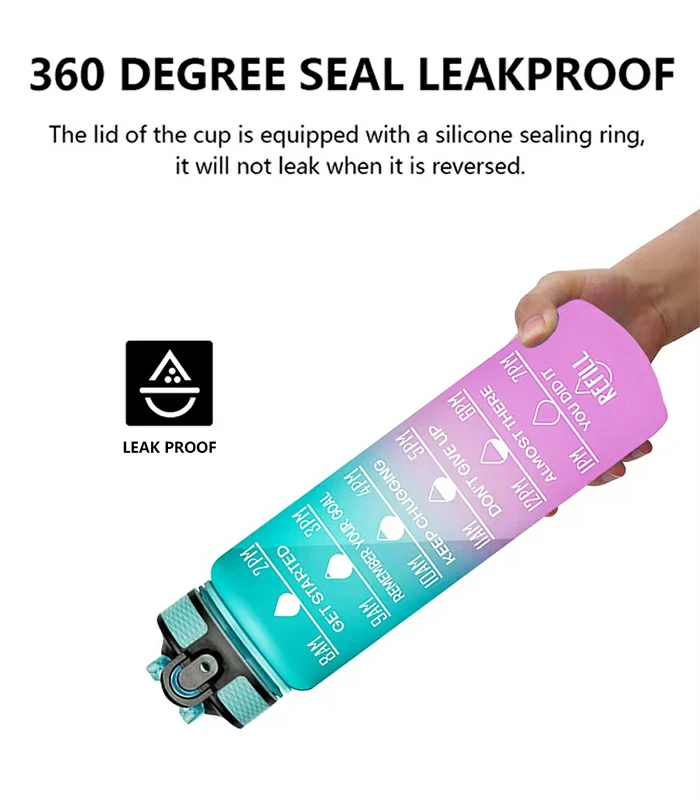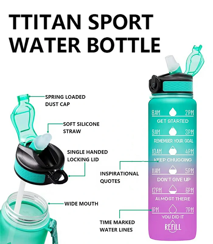 زجاجة مياه رياضية، زجاجات bpa free بعبارات تفائلية وسعة 1000مل، خالية من الBPA وقابلة للاستخدامات الكثيرة