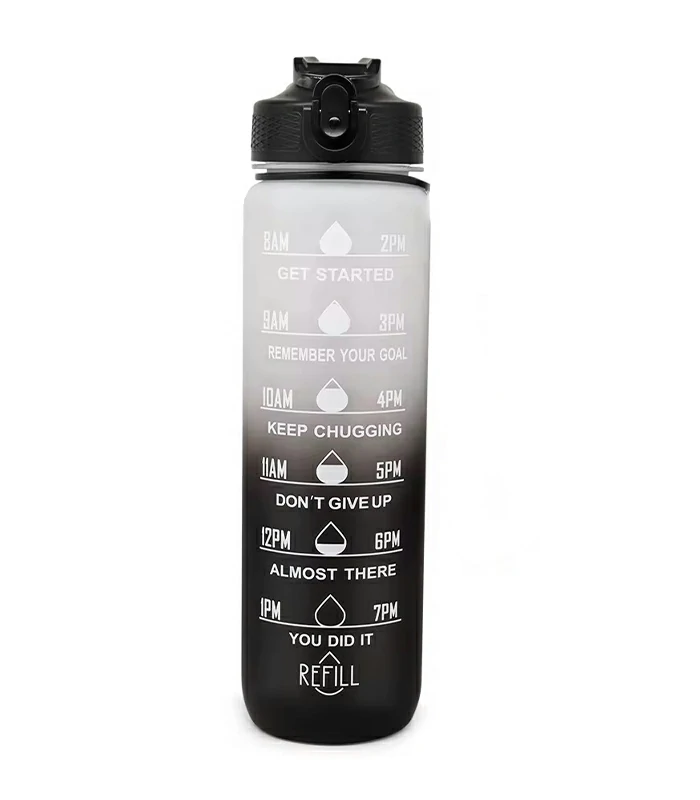 تتميز هذه الزجاجة بتصميمها الحديث المزين بعبارات تفاؤلية محفزة تضيف لمسة من الإيجابية والنشاط إلى يومك، مما يجعلها أكثر من مجرد زجاجة مياه، بل قطعة ملهمة تدفعك للاستمرار بطاقة وحماس.