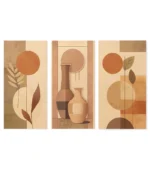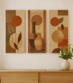اختيارك لـ تابلوه مودرن 3 قطع كهذا يعني أنك تضيف إلى منزلك تحفة تجمع بين الفن والذوق الرفيع. فهو يعكس روح الديكور العصري المينيمال ويحوّل الجدران الفارغة إلى مساحة نابضة بالحياة والأناقة. هذا التصميم المتقن يجعل كل نظرة إليه تجربة جمالية جديدة، خاصة مع الدمج الرائع بين الألوان الترابية والفازات التي ترمز إلى الدفء والهدوء.