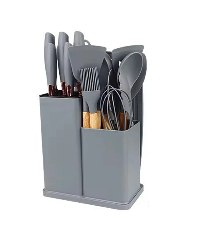 19 Piece Rectangle Kitchen Silicone Cooking Utensils & Knife Set