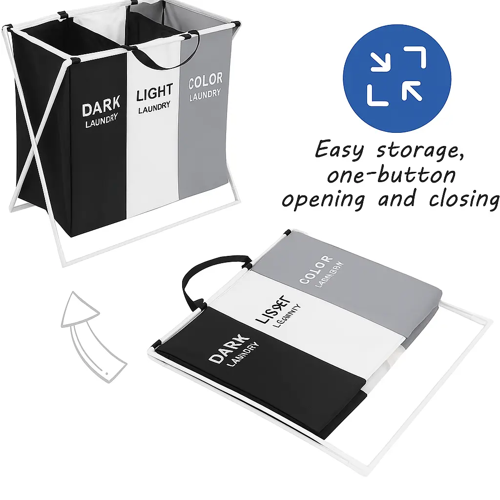 Tired of mixing colors and whites on laundry day? This 3 section laundry hamper makes sorting laundry simple, fast, and organized. With three spacious compartments clearly labeled for whites, darks, and colors, this 3 section laundry basket is the ideal solution for streamlining your laundry routine at home.