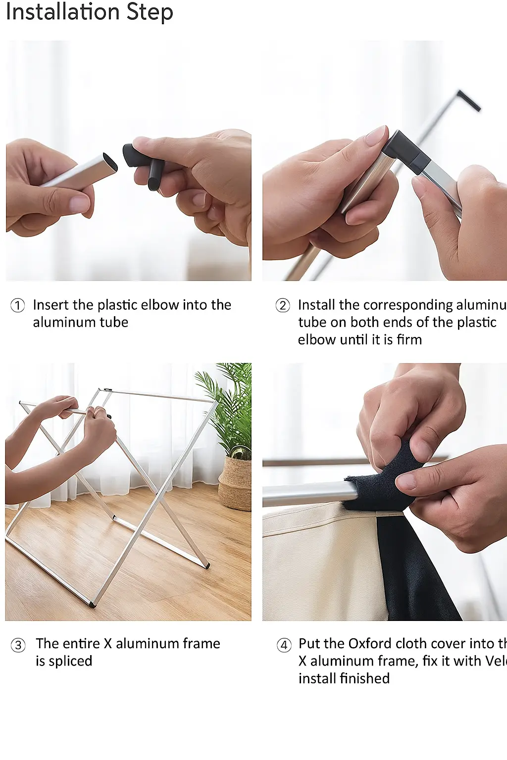 - Materials: Aluminum tubes with plastic joints support