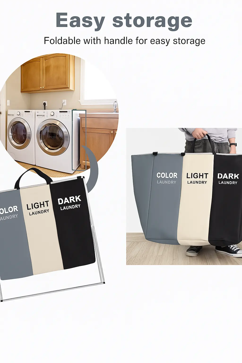 - Product: 3 Section Laundry Basket – Whites, Darks & Colors Laundry Basket