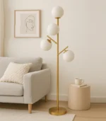 The gold metallic frame is more than just visually appealing—it adds a touch of luxury and refinement to any setting. The metallic sheen captures and reflects light subtly, creating an elegant focal point that complements both contemporary and classic interiors. Paired with the soft, diffused illumination from the frosted glass shades, the 4 Arm Floor Lamp delivers both functionality and style in perfect harmony.