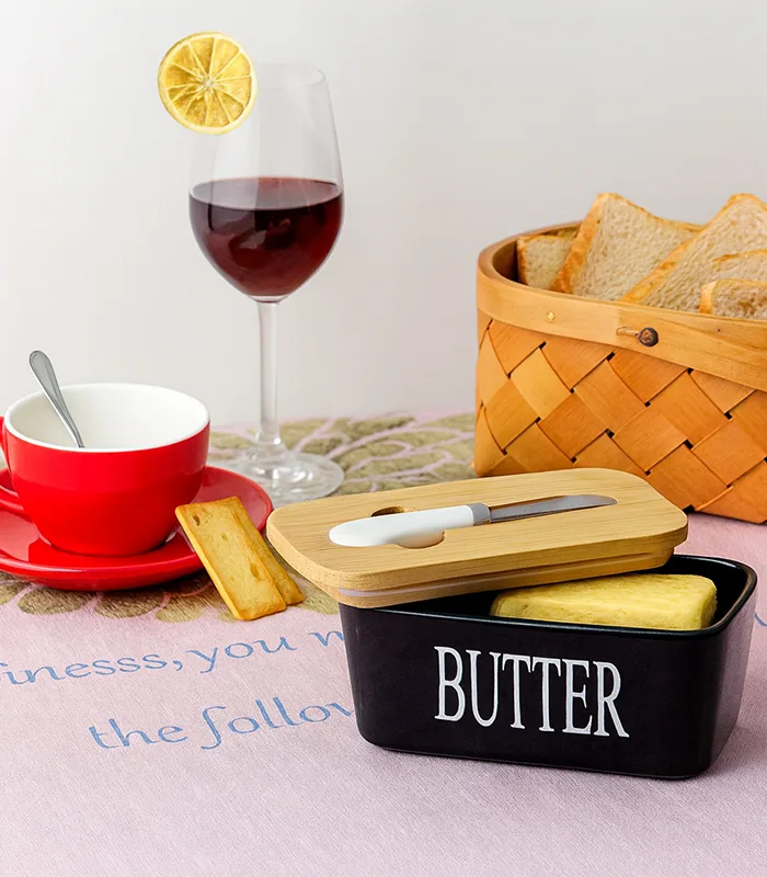 This butter and knife box is not just about aesthetics, it is highly functional. The porcelain body keeps butter at the ideal consistency for spreading, while the bamboo lid helps protect it from air and contaminants. The integrated knife holder on the lid makes storage simple and prevents messes, keeping your kitchen organized and efficient.