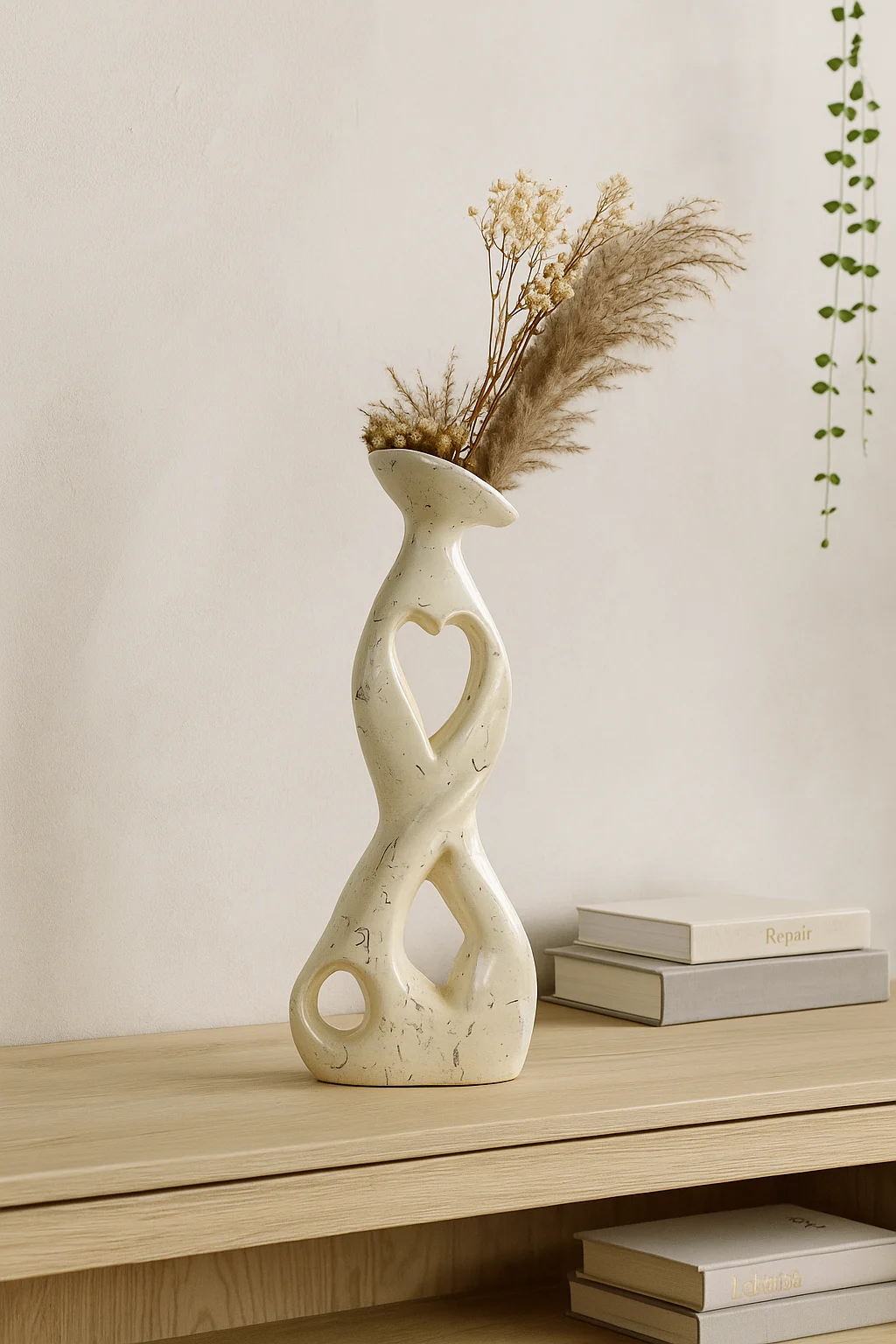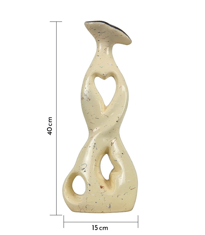 Elevate your interior space with this uniquely sculpted clay ceramic vase, designed for modern, artistic home decor. The vase features a flowing, intertwined form with three soft-edged cutouts—one shaped like a heart—bringing a touch of character and elegance to your shelves or console tables.