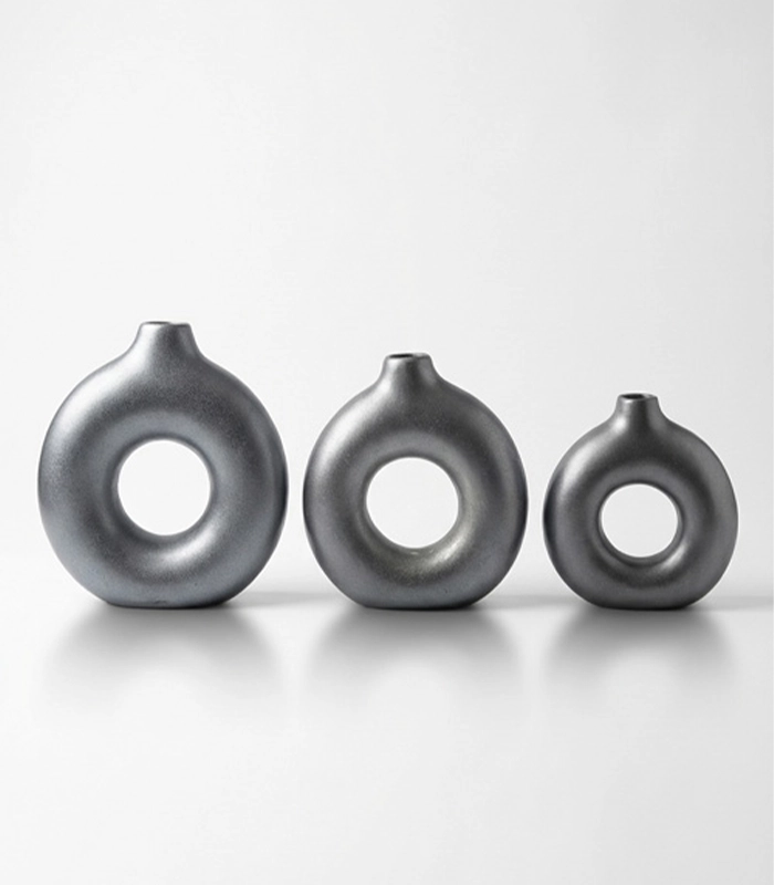 Donut Vase Ceramic, Silver Donut Vase Set 3 Vases