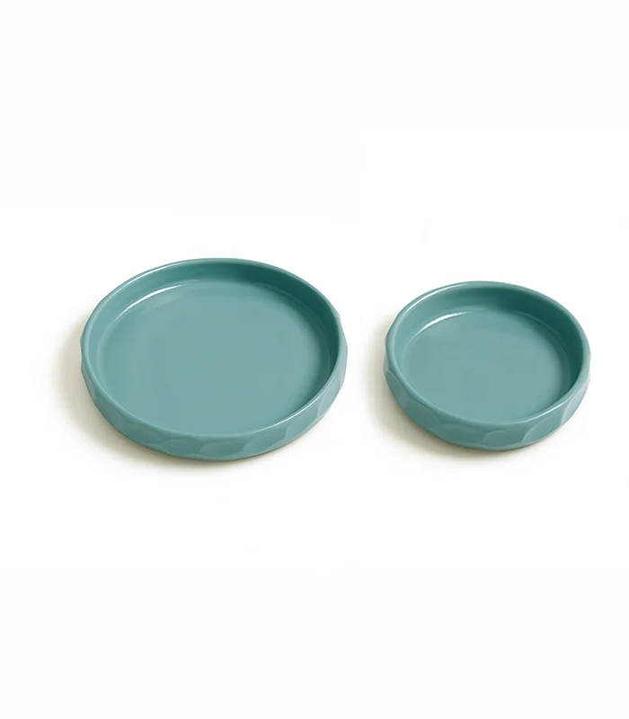 What sets these hand crafted plates apart is their stunning turquoise color, which adds vibrancy and elegance to your table. The textured exterior not only enhances the design with a modern, artisanal touch but also provides a comfortable grip, ensuring they are as practical as they are stylish. The subtle surface variations reflect the beauty of handcrafted work, giving each piece a character of its own.