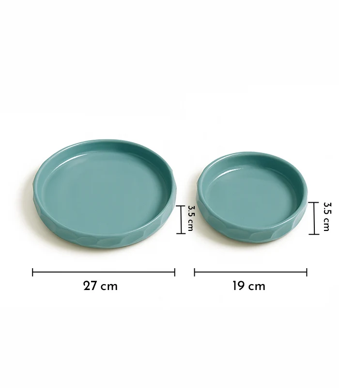 The hand crafted plates set includes two plates of different sizes, offering versatility for various serving needs. The larger plate measures 27cm wide and 3.5cm high, perfect for presenting main dishes, shared meals, or large portions, while the smaller plate measures 19cm wide and 3.5cm high, ideal for side dishes, appetizers, or desserts. Together, they form a practical handmade tableware set that adapts to any occasion, from casual family dinners to elegant gatherings.