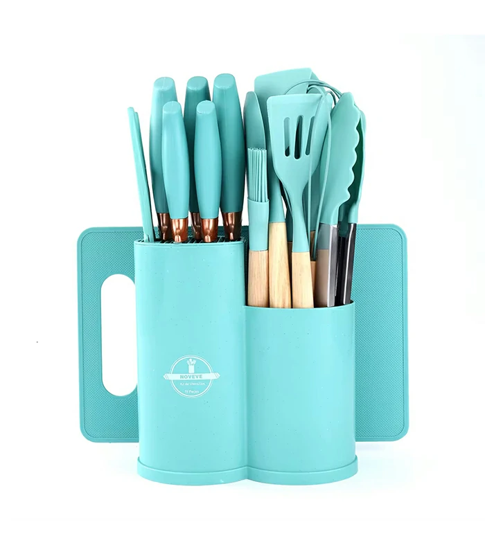 19 Cool Pieces Rectangle Kitchen Silicone Cooking Utensils & Knife Set
