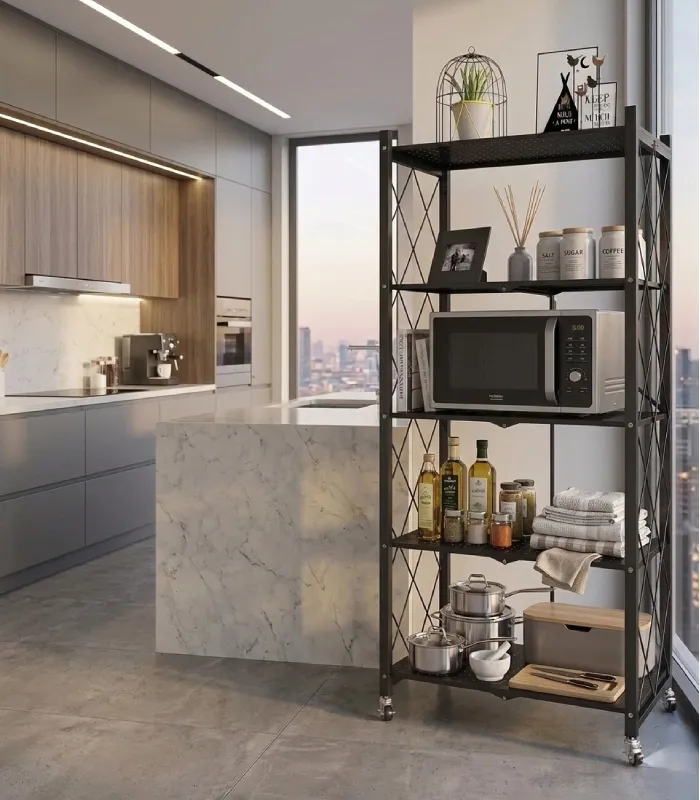One of the most convenient features of these shelving units is the foldable shelf design. Each layer can be folded when not in use, helping you save valuable space and customize the rack according to your storage needs. This makes the unit perfect for flexible storage solutions in apartments, garages, kitchens, laundry rooms, offices, or storage areas.