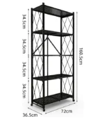 - Specification: It is 5 layer shelving unit that each layer can be folded to save up space as well as 4 wheels to freely move the unit