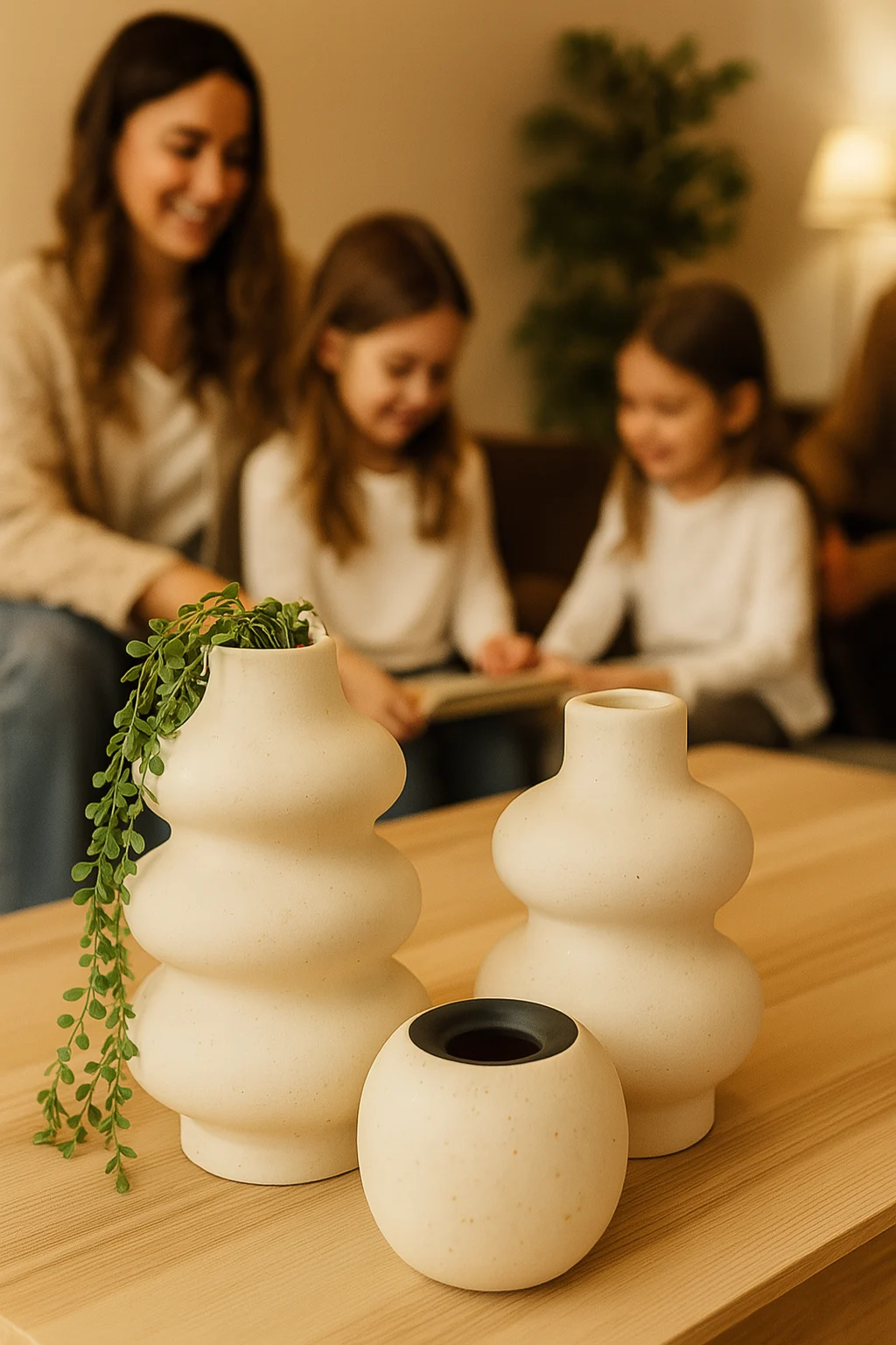 - Set of 3 Ceramic Vases in modern tones: white and beige