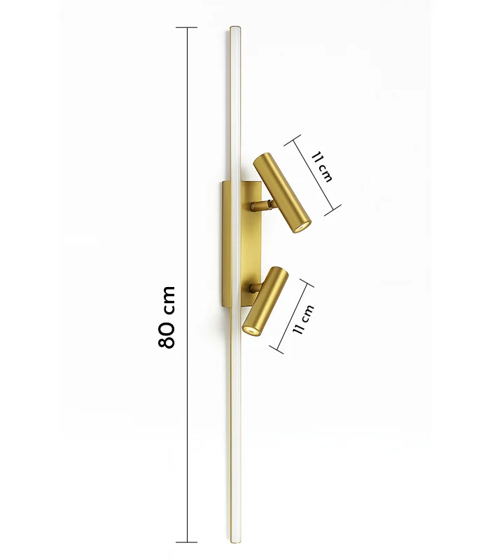 Add modern function and directional lighting to your space with this sleek LED wall light featuring two gold-finished wall spot lights. Mounted on an 80 cm rod, each spotlight measures 11 cm and is fully adjustable—allowing you to target light where it’s needed most.