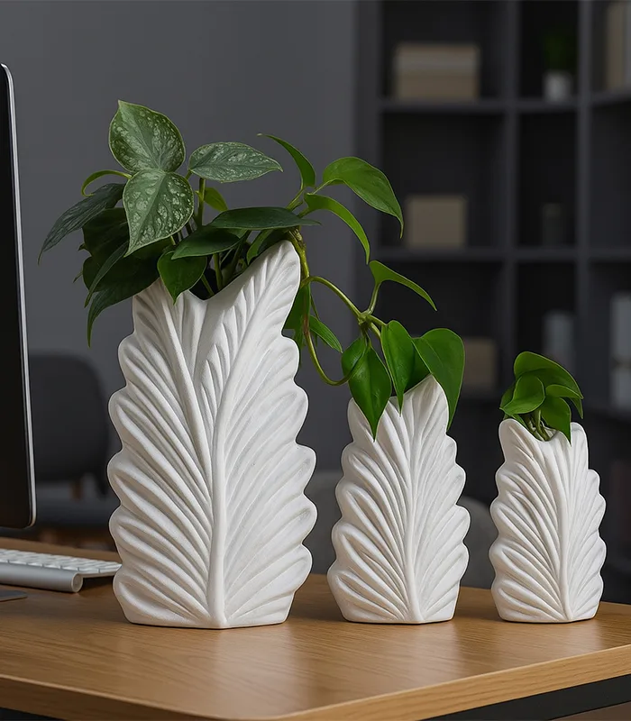 Bring texture, shape, and gentle contrast to your space with this thoughtfully designed 3-piece plant vase set. Inspired by nature, each vase features a soft leaf-shaped form, made from high-quality clay with a modern matte vase finish that feels smooth and organic.
