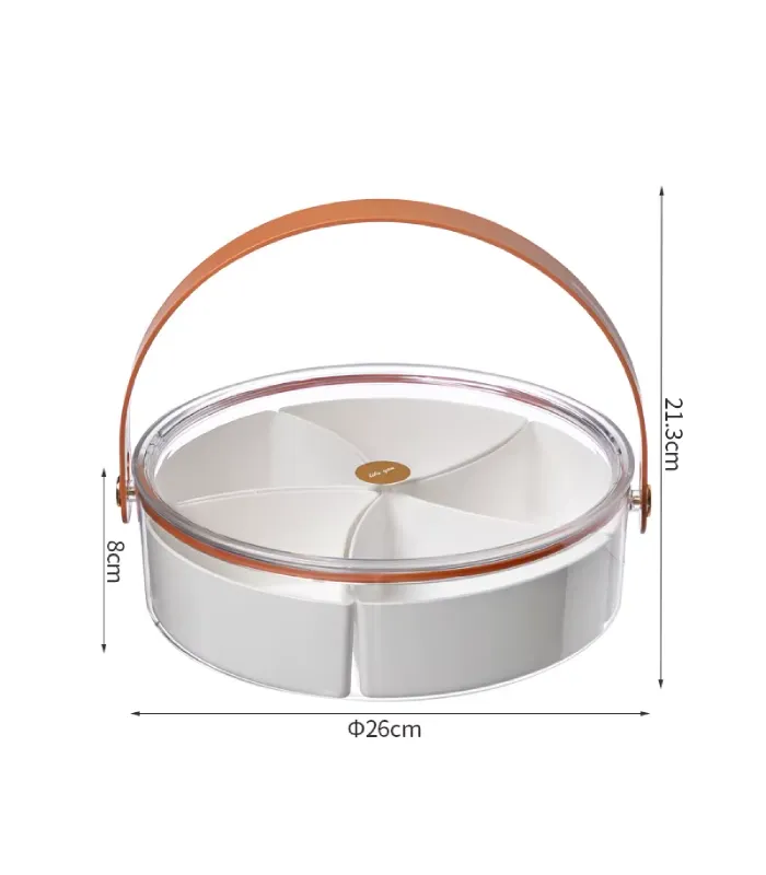 Made of acrylic, making the snacks plate have a good look for its transparent design with a touch of orange in its handle, this snacks platter with lid is resistant to impacts and resistant to heat up to 90c degrees.